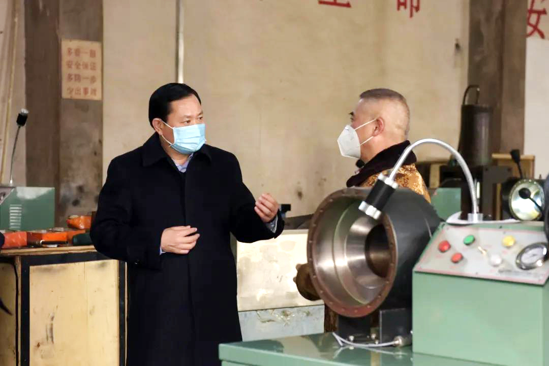 On January 20th, County Party Secretary Qiang Yanfeng visited some enterprises in the Economic Development Zone to conduct research and guide epidemic prevention and control, as well as production and operation work. Wang Yingmin, member of the Standing Committee of the County Committee and Director of the County Committee Office, and Cheng Xuemin, Secretary of the Party Working Committee and Director of the Management Committee of the Economic Development Zone, accompanied the investigation. Qiang Yanfeng came to the Economic Development Zone to conduct a visit and research on the recovery hydraulic system.
